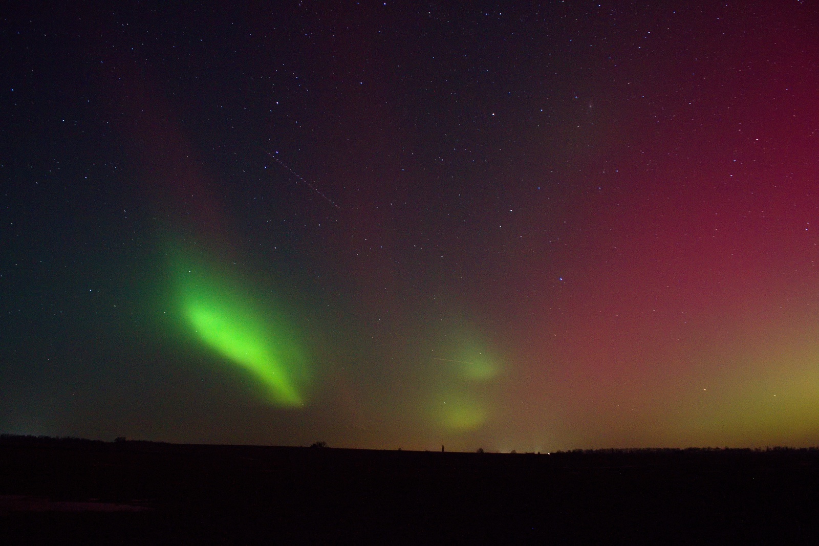Po příjezdu na místo, před půl desátou Marek (kamarád) hlásí, že vidí červenou oblohu. Mi se taky lehce zdá, ale může to být jen klam. Po zkušební fotce na mobil je to jasné, POLÁRNÍ ZÁŘE, A VELKÁ.